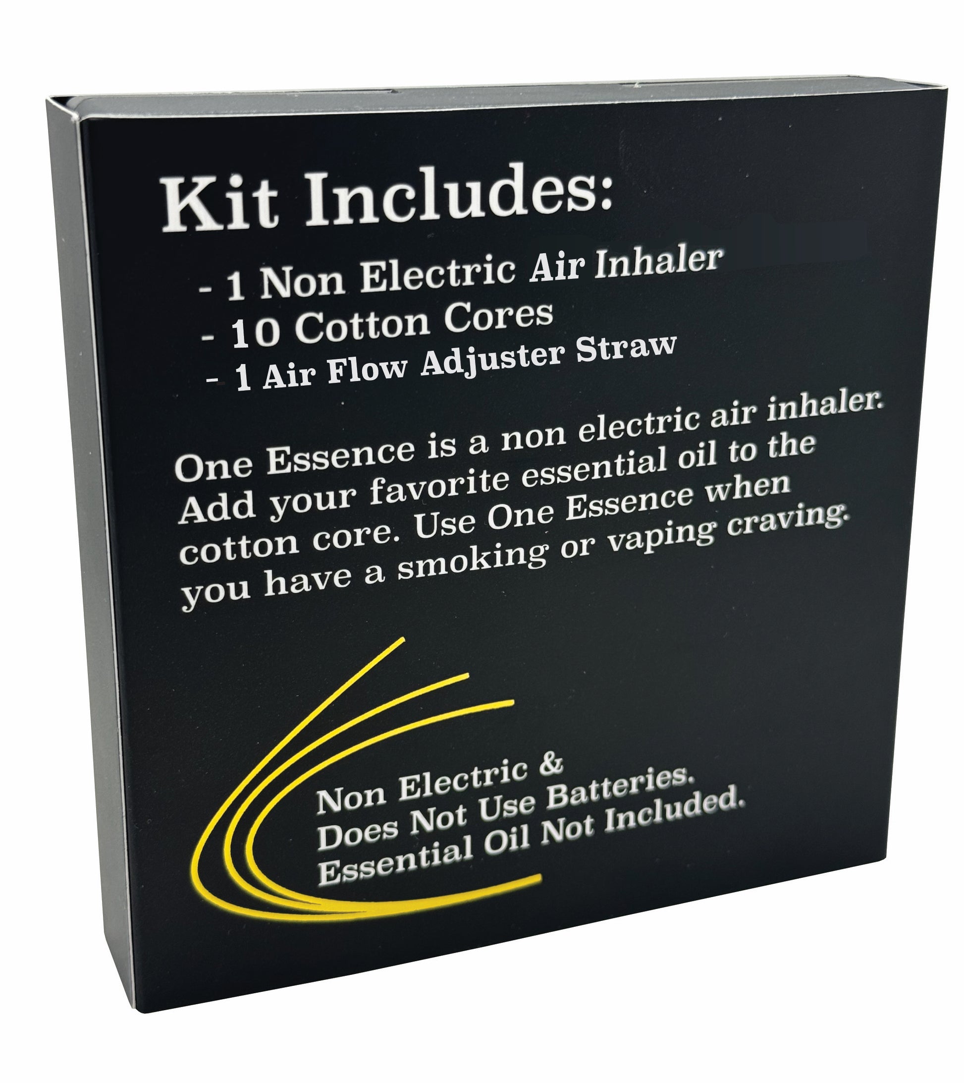 One Essence is a non electric essential oil air inhaler. Place your favorite essential oil on the cotton core then insert the core into the inhaler. Use one essence when you have a smoking of vaping craving. If you desire more air flow, place the black air flow adjuster straw alongside the cotton core.